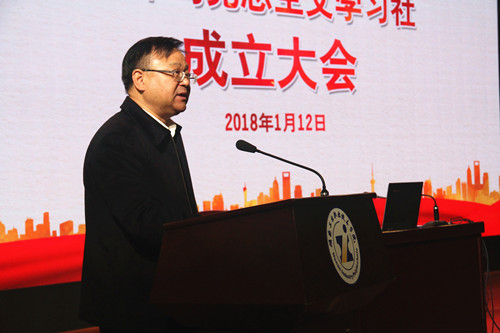 陈超在致辞中指出,青年马克思主义学习社是学习、研究、探讨、宣传马克思主义中国化最新成果的青年学生自学组织,对于引导广大同学树立共产主义的远大理想和中国特色社会主义共同理想具有重要作用。陈超代表学校表达了对青年马克思主义学习社蓬勃发展的美好祝愿,并宣布“青马社”正式成立。