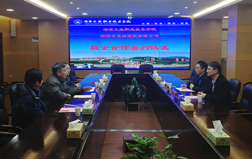 董建国致欢迎词,他从办学历程、社会影响力和发展战略等方面介绍了学校概况。黄德均介绍了思榕科技的发展历程、用人理念,产品特色和企业优势。在随后的座谈和交流中,校企双方就人才培养、师资培训及技术资源共享等方面进行了磋商,并就未来可合作的共建校内实训室、厂中校、订单人才培养、工业师培养、教师企业顶岗培训、技术服务等达成共识,决定共同推进我校与思榕科技有限公司的相关合作项目。双方将充分发挥各自优势,进一步深化合作。