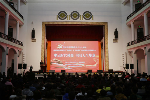本网讯 12月12日下午,由湖南省委教育工委、省教育厅主办,湖南省大学生思想政治教育研究会、湖南省高校辅导员工作研究会承办,湖南大学协办的“学习宣传贯彻党的十九大精神——湖南省高校优秀辅导员‘校园巡讲’和‘网络巡礼’活动”启动仪式暨首场报告会在湖南大学大礼堂举行。湖南省教育厅副厅长应若平,湖南大学校领导段献忠、于祥成出席活动。会议由湖南省委教育工委宣传部部长刘书华主持。