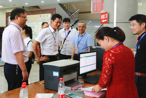 校长向罗生(左二)、党委副书记陈超(左一)、副校长邓建国(右三)等看望迎新工作人员并了解新生报到情况