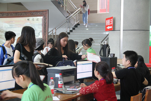 我校在长沙高铁站、火车站、汽车站等多个主要交通站设立了接站台,一批又一批新生和家长在接站志愿者的引导下乘坐迎新大巴来到学校。校园内设有多个迎新服务点及清晰明了的指示牌,我校志愿者热情带领新生报到并介绍校园概况。各学院、相关职能部门工作人员坚守岗位,引导新生有条不紊的完成相关报到流程。各院报名点内,我校宣传片、校歌的播放引新生驻足观看、聆听。