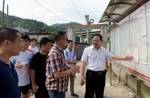 7月21日至22日,党委副书记陈超、学生工作处副处长彭波、校团委副书记李陟威一行来到洪江市岔头乡水尾村、茅渡乡茅渡村和颜容村,看望慰问在该地进行扶贫调研的我校师生,向志愿者详细了解了此次脱贫攻坚的调研、建档立卡、挂图作战表等实际工作情况,通过与乡、村干部座谈了解了当地的贫困农户情况和脱贫举措,实地查看了村情村貌及主要经济作物——黄菊种植基地、工业丝瓜种植基地等。