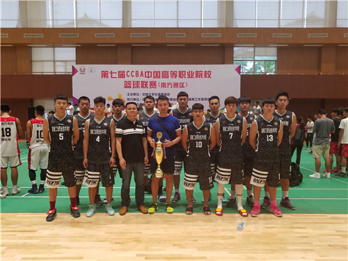 在5月30日的决赛中,我校对阵长沙民政职院。两支球队都是来自于湖南长沙,一路上过关斩将,在南京这座城市上演了湖南德比。在上半场的时间内我校凭着优异的攻防表现领先长沙民政职院6分,而下半场由于我方进攻不顺,对方外线超常发挥,将比分反超。我校8号球员蓝小东奋力拼搏,连续打成3个2加1,将比分拉近。最终,我校男篮获得第七届CCBA中国高等职业院校篮球联赛(南方赛区)亚军,成功晋级全国赛。