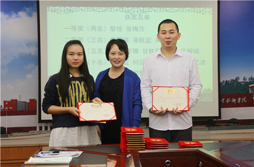 本网讯 10月19日,由我院党委宣传部主办、院报编辑部承办、长沙博众印刷有限公司赞助的“‘博众杯’我的校园——孟夏书香”主题征文大赛颁奖仪式在学院二会议室隆重举行。党委宣传部部长肖望兵以及宣传部相关指导老师出席颁奖仪式,获奖选手及大学生记者团全体成员参加颁奖仪式。活动由实习学生记者聂聪主持。