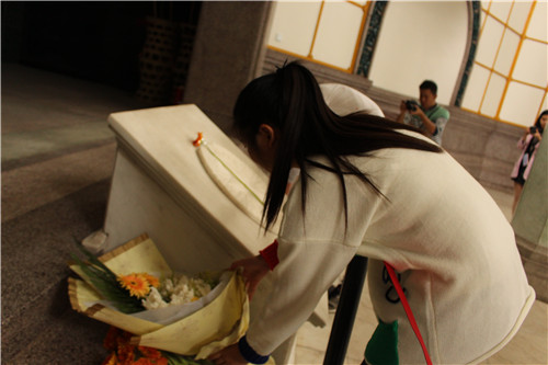 活动过程中,全体学员在烈士陵园举行了庄严而肃穆的祭奠仪式,向烈士们默哀鞠躬,并进献鲜花。祭奠仪式结束后,在烈士塔内,学员们了解了烈士们的生平事迹,脑海中不时浮现着红旗飘飘、万里长征、浴血奋战的场景。