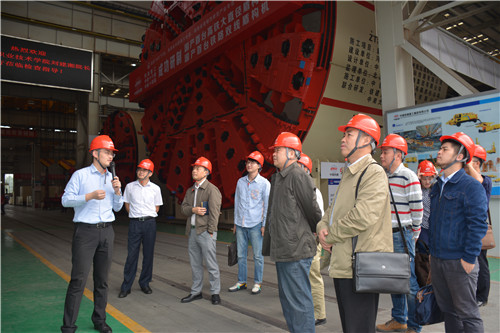 在铁建重工,调研组参观了掘进机总装车间,了解了掘进机的工作原理及制造过程,公司总经理程永亮在座谈会上介绍了企业发展历程,双方探讨了地下工程机械发展趋势及智能制造技术发展对人才需求情况,就在我院建立企业学院达成了初步意向。