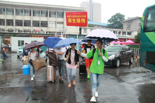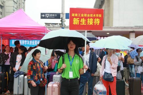 从新生抵达车站直至到达校园并完成报到,一路都有志愿者相伴:校外,我院分别在汽车西站、南站、北站、东站以及火车站和高铁站都设置有迎新接待志愿者、迎新专车接送,特别是在火车站内迎新的志愿者,更是连续两天冒着雨夜通宵守候,随时准备着为新生以及家长提供周到服务;返校专车上,志愿者为新生详细讲解报到注意事项、介绍学院地理位置,不厌其烦为新生解答疑惑;校园内,志愿者们身着雨衣疾驰大雨中为新生指路,积极帮助新生搬运行李、打伞,细心地引导新生完成报到流程,并介绍校园环境和大学生活经验。