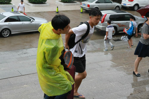 雨中帮新生搬运行李