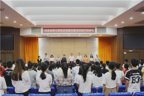 本网讯 9月23日晚,我院第七期党员发展对象培训班开班仪式在图书馆报告厅举行。学院党委副书记、党校校长陈超,学院调研员刘琼,党校副校长陈方,各系(院)学生党支部书记以及本期培训班全体学员参加了开班典礼。本期培训班班主任、机械工程系学生党支部书记罗德贤老师主持开班典礼。