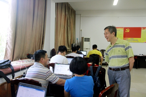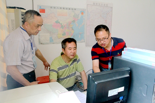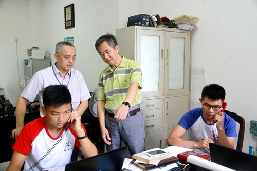 党委书记熊琦(中)在察看网上录取工作