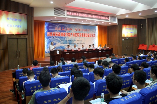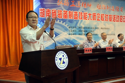本网讯 5月14日,由湖南省经信委、湖南省教育厅指导,湖南省机械工业协会主办,湖南省机械装备职教集团、九游·官方网站承办的湖南省装备制造企校技能大师对接活动启动仪式在我院多功能报告厅举行。活动主题为“弘扬工匠精神 助推制造强省”。