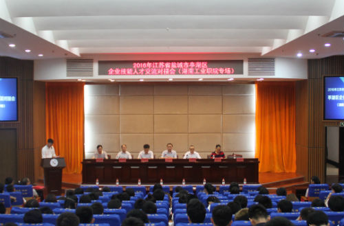 本网讯 5月31日,江苏省盐城市亭湖区企业技能人才交流对接会在我院报告厅举行。江苏省盐城市亭湖区人民政府副区长卫爱军、人力资源与社会保障局局长周亚民、副局长常祝亮、副局长孙长富、我院副院长邓建国及招生就业处、对外合作交流处相关负责人出席会议。江苏省盐城市亭湖区重点企业负责人、亭湖区人社局部分干部、我院各系(院)就业干事及学生代表参加了会议。会议由我院对外合作交流处副处长伍俊晖主持。