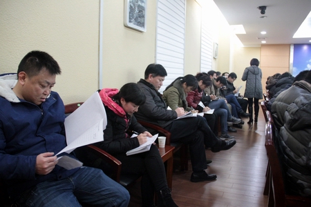 全体与会人员认真填写《九游·官方网站2015年中层干部民主测评表》