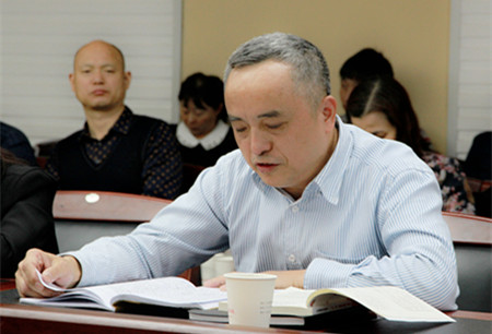 学习研讨期间,党委中心组全体成员集体观看了国家行政学院许耀桐教授的视频讲座——《严以用权为民服务》。院长、党委副书记刘建湘传达了省委教育工委《关于部分高校存在的主要违纪违规问题通报》。党委副书记陈超带领全体成员集中学习了习近平总书记在中共中央政治局第二十六次集体学习时的讲话及中共湖南省委组织部《关于认真学习贯彻习近平总书记以普通党员身份参加所在党支部组织生活会所作重要指示精神的通知》(湘组发[2015]14号)文件精神,副院长邓建国从读本简介、重点导读和个人体会等三个方面导读了《作风建设永远在路上“三严三实”党员干部学习读本》。