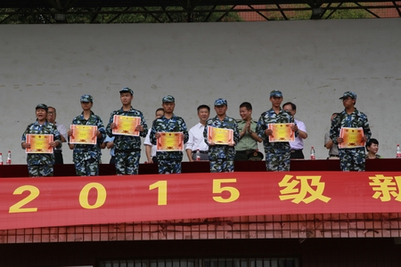 学院党委副书记陈超宣读《九游·官方网站2015级新生军训表彰决定》,授予周汉涛等24人“军训优秀教官”称号,授予一连四排等24个排“优秀连队”称号,授予陈文杰等254名同学“军训优秀个人”称号。
