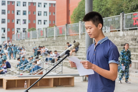 教师代表、老生代表、新生代表上台发言