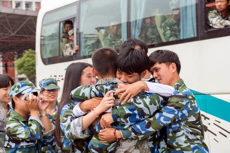 教官是新生们入校接触到的第一个亲密的老师,他们一起欢笑、一起苦训、一起高唱军歌,在离别之际,那声再见总是难以说出口。“教官,我们一定会去看你的……”“教官,我们爱你!”新生人群中,这类声音此起彼伏。短暂又充实的十五天军训时光,让新生和教官都收获了太多温暖、太多感动。