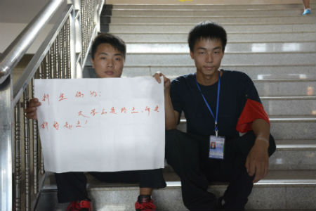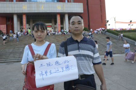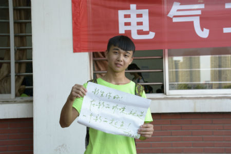 这位现代设计艺术系新生在家长的陪同下报名,记者采访他们时,父亲说,当他们感受到迎新志愿者的热情时,心里很温暖,他对女儿在这里读书很放心,希望女儿能在学校生活得开心,希望她的梦想能在这里腾飞。