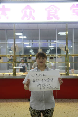 食堂阿姨送上温馨祝福,她欢迎广大新老同学来食堂就餐,并表示,有她们在的每一天,一定能保证学生饭菜的卫生可口。