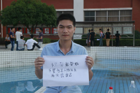 机电s13-5班李鳌希望学弟学妹们度过美好的三年大学生活,勿忘初心,合理的与人交往,和志同道合的人做朋友,不要虚度时光。