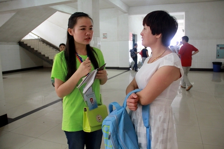 学生记者采访新生家长