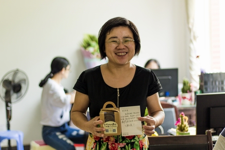收到蛋糕和祝福卡的老师满心感动