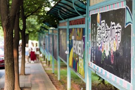 个性板报,表情达意。为营造庆祝氛围,各系(院)学生纷纷在黑板上设计了精美的板报,把教师的责任及学生对老师的挚爱之情淋漓尽致地表达了出来。