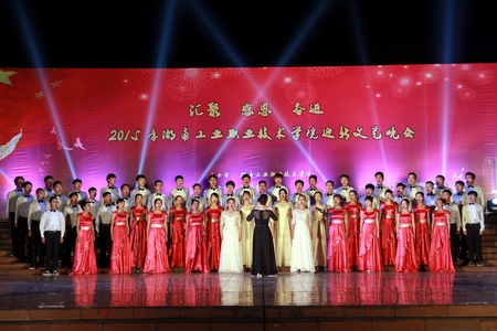 水木清华,钟灵俊秀。晚会在美轮美奂的开场舞《跳春》中开始;贺梅春老师指挥合唱团演唱《在太行山上》、《人民解放军》、《强军赞歌》,并与新生方阵队组成穿插阅兵式的情景合唱,一首首军歌响彻校园;乐器表演《绒花》配合范小雨老师的倾情演唱,带给观众柔美温情的感受;诗朗诵《青春中国》将朗诵艺术的语言感染力发挥得淋漓尽致;充满魔力和惊喜的《变脸》节目引来一片叫好声,京剧演员还下台与席地而坐的领导、老师及同学握手,并近距离表演变脸绝技。