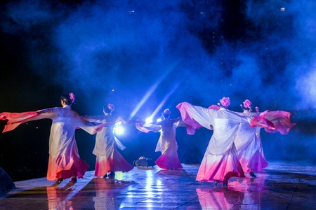“虹霓霞帔步遥冠,钿缨累累佩珊珊”,天心阁文学社汉服部的同学们身着自己裁剪、扎染、制作的汉服,为观众们带来了自编自演的汉舞《霓裳羽衣》,展现了艺术与美的不朽华章;“六十年春风化雨,六十年英才广布”,台上幻灯片放映起《同贺甲子》,反映学院变迁的老照片一张张翻过,老、中、青三代教师代表分享学院发展过程中每个阶段的故事,动人讲诉六十年的历经沧桑,六十年的扬帆起航;校园歌手大赛历届冠军返回母校表演歌曲串烧,引来一片欢呼,歌声唤醒师生们对每个年代校园歌曲的记忆,并为母校送上了真挚祝福。