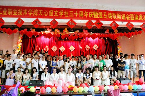 颁奖典礼后,天心阁文学社以“演绎青春,献礼社庆”正式举行30周年庆典暨雪马诗歌朗诵会。在社旗及社刊展示过后,播放了特邀嘉宾诗人陈新文、罗鹿鸣、黄曙辉,学院各社团及外校各文学社团对天心阁文学社三十周年庆暨雪马诗歌朗诵会祝福视频。湖南爱乐协会朗诵艺术家们声情并茂朗诵了雪马名篇《我的祖国》,舞蹈《汉唐霓裳》一曲霓裳羽衣,舞出了一段盛世离觞;文学社社员合唱“相亲相爱一家人”祝福美好而温馨的一天,同时也唱出了团结一心共同面对美好明天的期待。