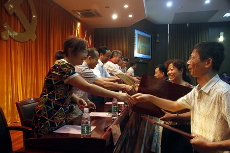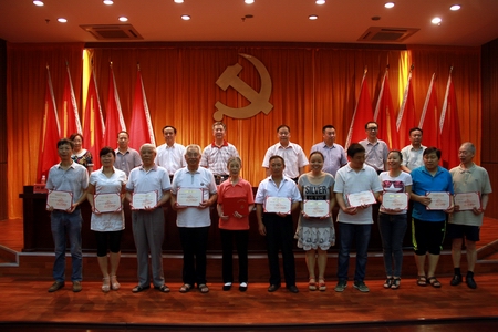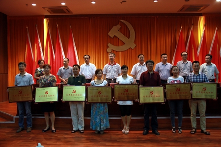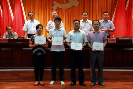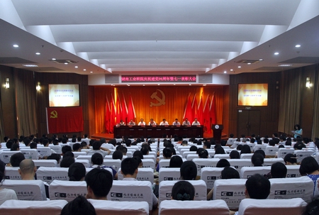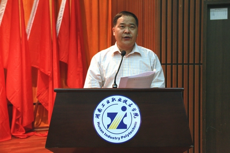 学院院长刘建湘宣读《关于2015上半年发展新党员的决定》和《关于表彰2013-2015年度优秀基层党组织、优秀共产党员和优秀党务工作者的决定》:机械工程系肖泉等161名同志被吸收为中国共产党预备党员;机关一直属党支部等8个基层党组织被评为优秀,龙华等40人被评为教职工优秀共产党员,周立华等4人被评为优秀党务工作者。
