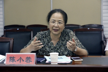 7月3日下午,由教育部组织的调研组——全国高等学校体育教学指导委员会公共体育组副组长陈小蓉一行来我院调研《高等学校体育工作基本标准》实施情况并召开座谈会。我院副院长邓建国、邱丽芳,体育艺术部相关负责人、老师和学生运动员代表参加了座谈会。座谈会由邓建国主持。