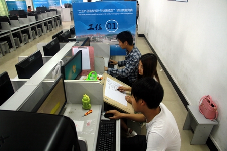 此赛项将在我院举行,来自全省的30名参赛选手中仅有两名女生。我院的三位参赛选手分别来自汽车工程学院和现代设计艺术系。主要训练内容是产品创意设计与表达、平面设计与快速成型加工。
