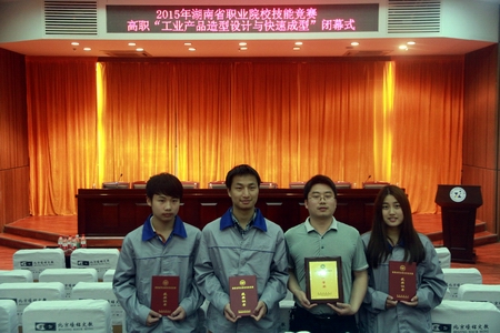 “工业产品造型设计与快速成型”赛项一等奖获得者与指导老师合影