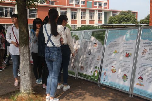 同学们在展板前学习