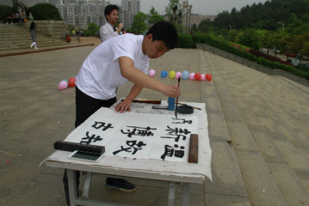 各社团在校园主道上摆台迎新,并开展各种活动,吸引了许多单招考生驻足观看并参与:天心阁文学社设置字谜给考生猜,展示汉字的独特魅力;书法协会成员现场挥墨,并将书法作品赠送给感兴趣的学生;曳舞协会带来酷炫的舞步,并邀请考生参与,带他们一起表演简单的舞步;双截棍协会用双截棍准确无误的击破气球,引来一片叫好声。