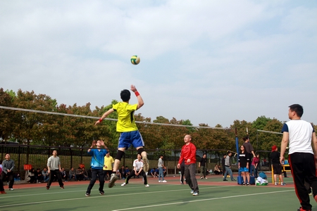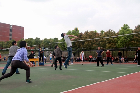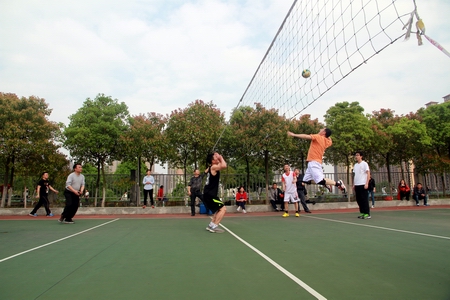 据悉,本届教职工排球比赛为六人制(女队员不少于1人)混合排球赛,分两阶段进行,先采用三局二胜制进行分组循环赛,取小组前两名;小组前两名再采用五局三胜制进行交叉淘汰。整届比赛将持续九天。