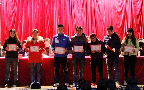 大会对2014年度的系部学管工作考核优秀、国家奖助学金、学院奖学金、优秀班集体、三好学生、优秀学生干部、文明寝室创建活动优秀寝室、大学生心理健康教育先进集体和先进个人、2014年元旦文艺汇演优秀节目、学院篮球文化节获奖单位和个人、广场文化节获奖单位和个人、优秀运动员和体育艺术工作先进个人等进行了表彰。在座领导为获奖单位和个人颁奖。