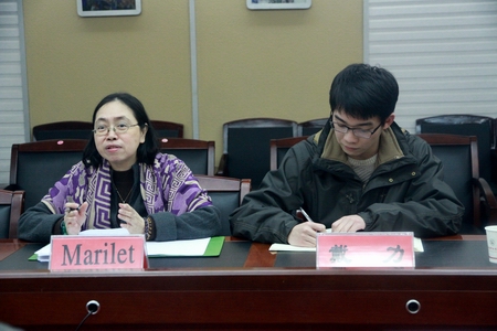 本网讯 3月10日,亚洲开发银行湖南省职教管理能力建设项目组专家Marilet女士一行来到我院,就职教质量保障、职教技能测试与论证、职教绩效监测与评价等方面展开调研。我院副院长董建国、周梦顺、邱丽芳及党政办、教务处、发展规划处、对外合作办、信息工程系等系(部)相关负责人参加了调研座谈会。