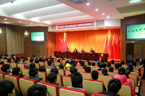 “总有一种真情触动内心最脆弱一环,总有一种感动让我泪流满面。”出身邵阳武冈农民家庭的林绍武代表受捐助学生发言。母亲体弱多病不能参加体力劳动,家庭重担全压在做小工的父亲身上,林绍武几次想退学为家里减轻负担,但又被劝了回来。在捐赠仪式上,林绍武与其他25名受助学生代表领到了每人2500元助学款,“我是一个幸运儿,今后要更努力学习,用行动回报每一位帮助过我的人。”就读机械工程系机制S14-3班的林绍武说。