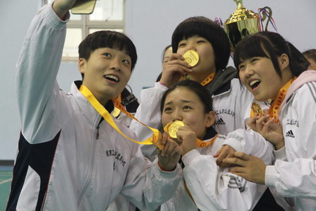 本网讯 11月18日上午,全省大学生运动会高职组女子排球比赛最后一场比赛在湖南工程职院体育馆举行,我院女排姑娘一鼓作气,直下三局轻取对手邵阳医专,创下全部比赛不失一局夺取冠军的好成绩。其中队员易欣、蔡舟被评为优秀运动员。