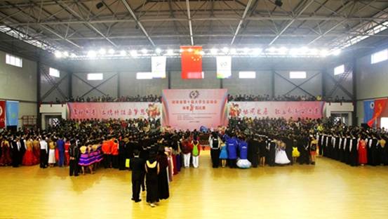 本网讯 11月22日上午,湖南省第十届大学生运动会体育舞蹈比赛开幕式在我院训练馆隆重举行。