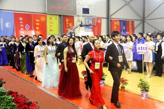 大运会体育舞蹈比赛组委会主任、我院党委书记熊琦主持开幕式。伴随着运动员进行曲,各参赛代表队和裁判员方阵入场。华丽得体的服装,优美大方的走姿,不时赢得场内观众的阵阵掌声。