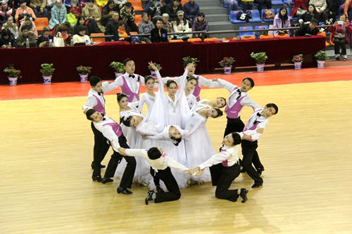 本网讯 11月25日上午,体育舞蹈比赛集体舞决赛拉开序幕。我院参赛代表队16名队员精诚合作,技压群雄,以绝对优势夺得高职专科普通组集体舞金牌。本届大运会体育舞蹈比赛设三个项目,我院收获两金一银。