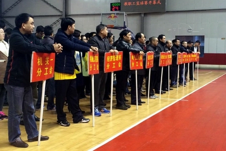 本网讯 12月2日下午,我院第十一届教职工篮球赛开幕式在训练馆举行。学院党委书记熊琦、院长刘建湘、工会主席张志勇、副院长陈超及体育艺术部、院工会相关负责人出席了开幕式,各分工会教职工篮球队队员参加了开幕式。开幕式由体育艺术部部长周文主持。