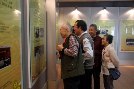 在即将参观校史陈列馆时,工作人员准备安排解说员为大家介绍,老校友们纷纷表示“没有人比我们更了解当年的母校”。他们指着当年的一张张黑白照片,述说那时候学校的旧址景象、校园生活,年轻的工作人员反而成为了老校友们的解说对象。从母校毕业后留校任教直至退休并一直关注学校发展的胡正根老师,无疑是最清楚我院发展历程的人之一。得知校史陈列馆中还有两张她在其中的集体照,胡老师不由得兴高采烈地指给其他同学看。