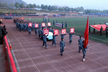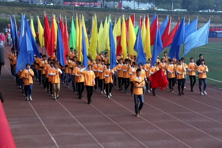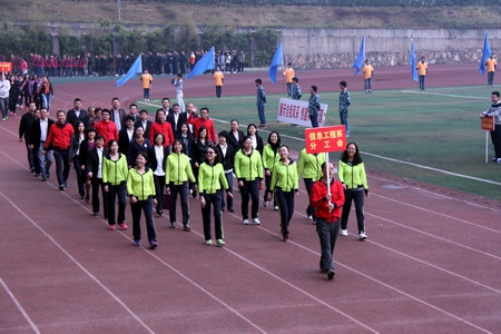 伴随着运动员进行曲,我院国旗礼仪队、院学生会代表队、彩旗方阵队、教职工代表队、裁判员代表队等27个代表队依次进入会场。他们精神抖擞、意气风发,踏着铿锵有力的步伐,喊着高亢嘹亮的口号,充分展示了我院师生昂扬向上的精神面貌。