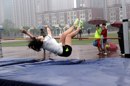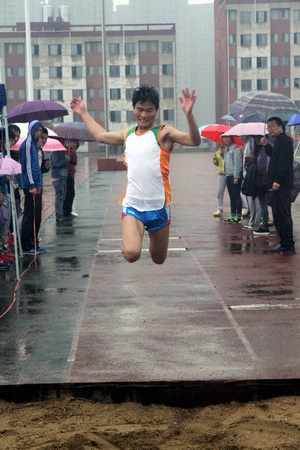 这一跳,跳出了激情,跳出了活力,跳出了蓬勃向上的青春。他们是时代的健儿,是无畏的勇士。刚毅和汗水可以铸就成功,体育健儿们插着勇敢的翅膀,在风雨洗礼下找到了属于自己的荣耀和自豪。