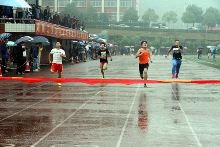 青春为冠,梦想为衣。他们在雨中踏着铿锵的步伐,跑出属于自己的青春活力。顽强拼搏是他们永恒的信念,争夺第一是他们不变的追求。或许已分不清他们脸上流淌的是雨水还是汗水,我们看到的是他们风雨中勇往直前的奔跑。