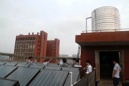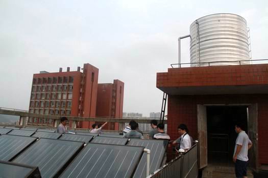 现场查看学生公寓太阳能空气能一体化热水系统运行情况